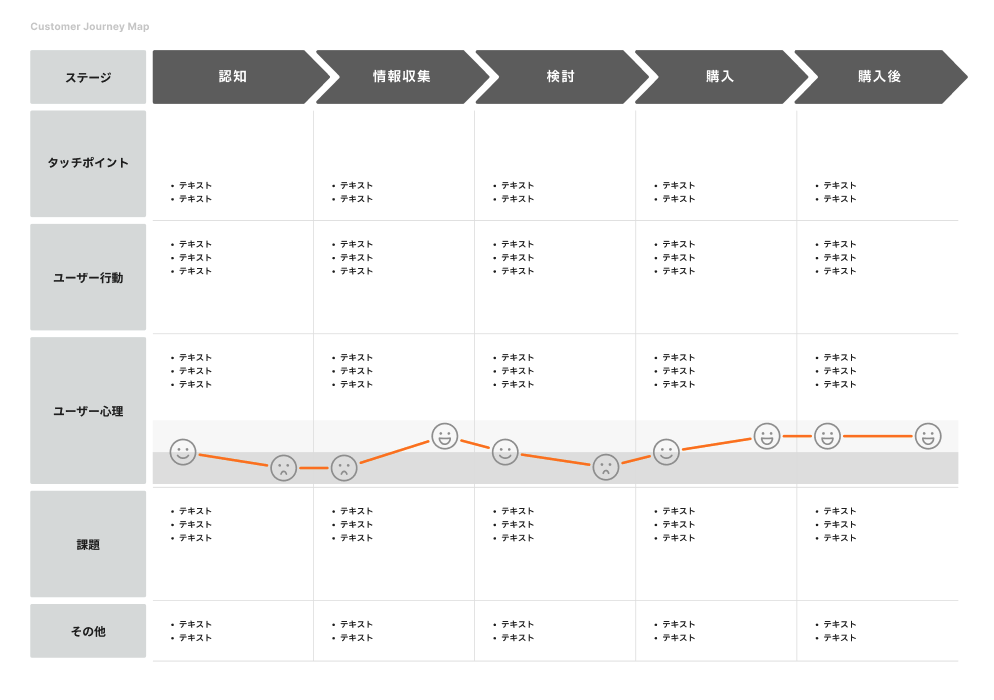 このマップを作成することで、企業は顧客視点でビジネスを捉え直し、どのタイミングでどのようなアプローチが効果的かを戦略的に検討できるようになります。
